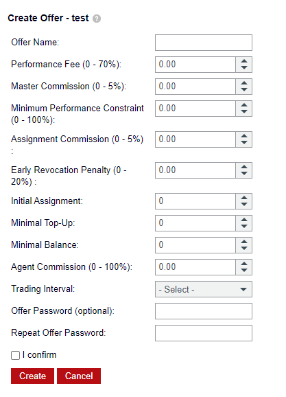 c. Complete el formulario Crear cotización (consulte Parámetros de cotización para obtener más información sobre la descripción de los Parámetros de cotización). Marque la casilla de verificación "Confirmo" y haga clic en "Crear".