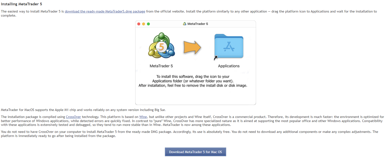 Después de seleccionar [macOS] para descargar, saltará a la siguiente página, haga clic en [Descargar MetaTrader 5 para macOS]