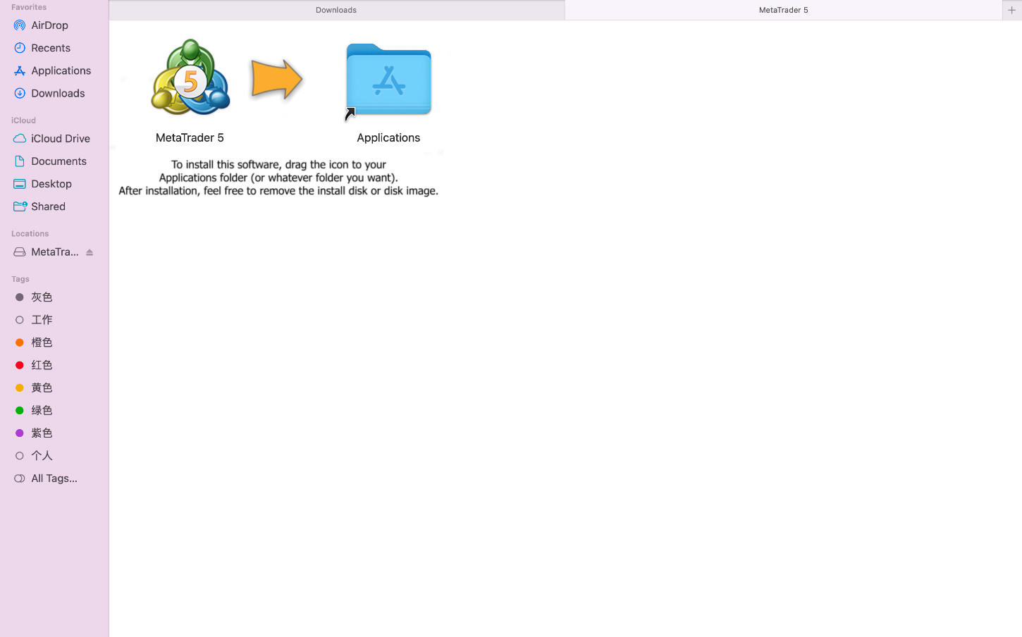 Después de descargar el paquete de instalación, haga doble clic en el icono de la izquierda y arrástrelo a la carpeta azul de la derecha para completar la instalación.