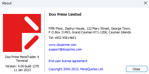 1. Después de iniciar sesión en MT4, haga clic en "Ayuda" en la barra de menú superior y seleccione "Acerca de".