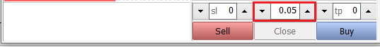 클릭 거래 창의 빨간 박스에 거래하고자 하는 포지션 크기를 입력한 후 매도 또는 매수를 클릭하여 설정된 거래 포지션을 현재 최신 가격으로 매수 또는 매도합니다.