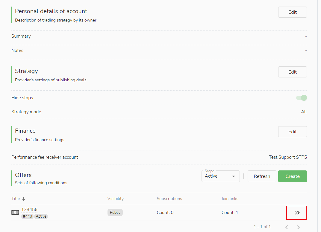 Na parte inferior da página de informações da fonte de sinal e alocação de pedidos, você pode visualizar a lista de seguidores e pode optar por excluir o seguidor clicando na seta no lado direito do seguidor.