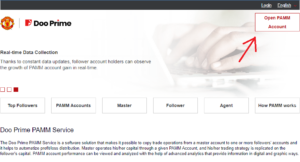 b. Clique em "Abrir conta PAMM" no canto superior direito da página inicial.