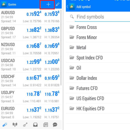 Clique no ícone no canto superior direito e escolha adicionar uma variedade de negociação; a plataforma Doo Prime inclui pares de moedas, metais preciosos, petróleo bruto, etc., que podem ser adicionados por você.