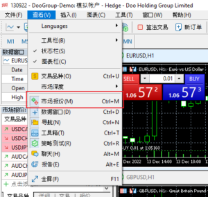 若市場報價的窗口沒有顯示,則需先在菜單欄點擊【查看】,後選擇【市場報價】
